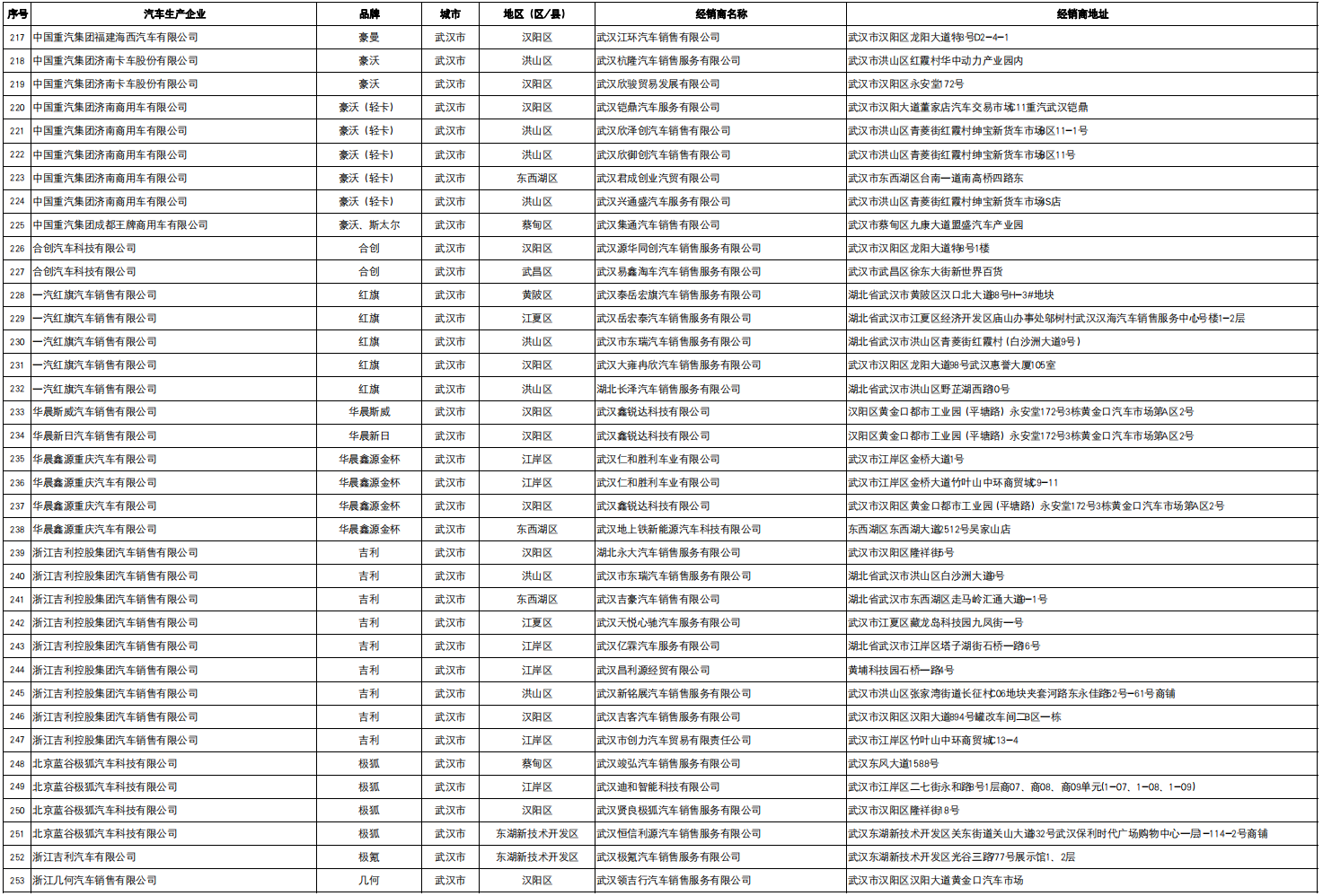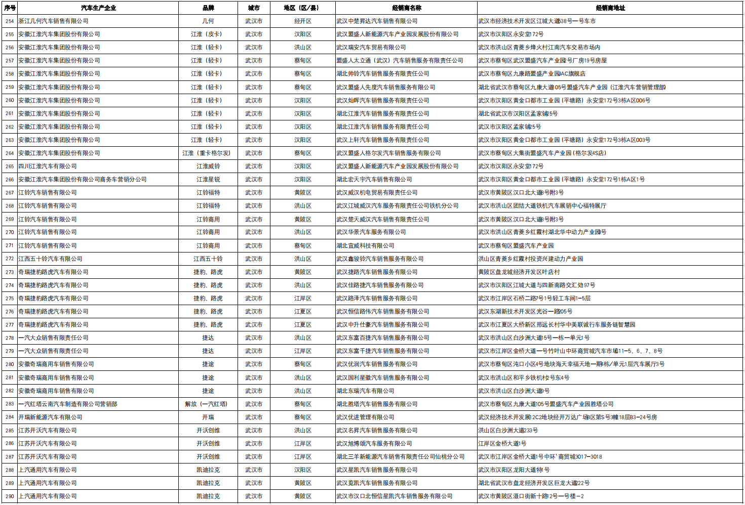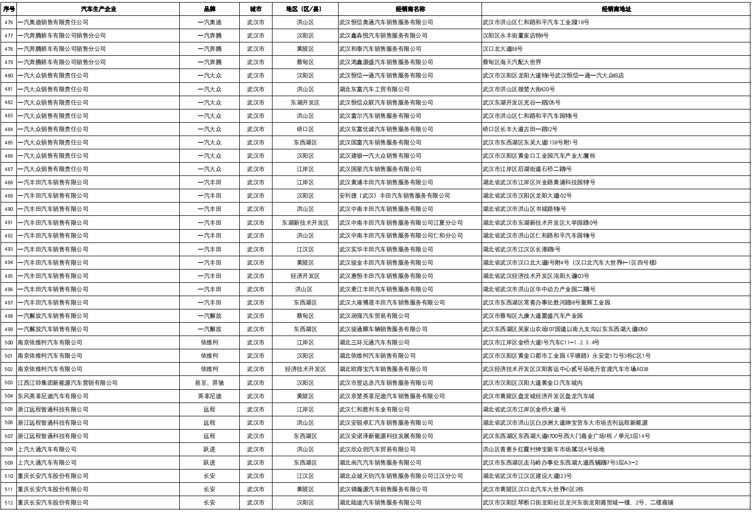 湖北省汽车流通协会发布的2022年汽车以旧换新专项行动经销商名单,武汉以旧换新推广汽车品牌及汽车经销商名单如下:
