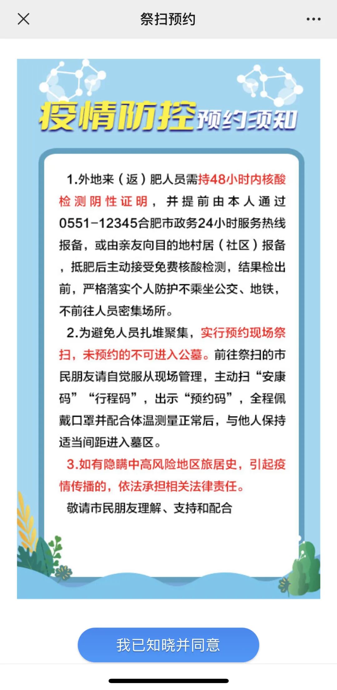 市民可通过关注“幸福南岗”微信公众号,在公众号底部菜单栏选择“祭扫预约”→“线上预约”点击“我已知晓并同意”《疫情防控预约须知》。