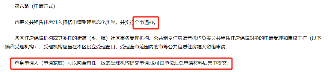 解答:可以。市筹公共租赁住房准入资格申请受理实行全市通办。单身申请人(申请家庭)可以向全市任一区的受理机构提交申请。