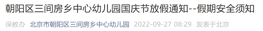 朝阳区三间房乡中心幼儿园国庆节放假通知--假期安全须知