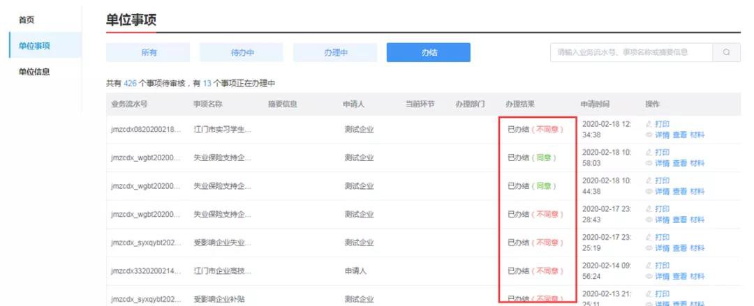 点击“办结”查询办理结果
