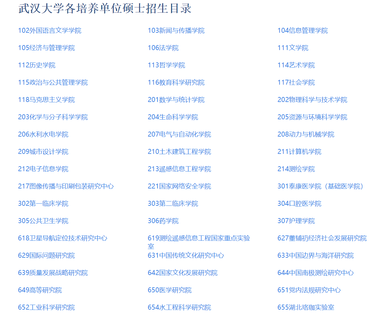 2023年武汉大学计划招收硕士研究生6900名左右(含拟接收推荐免试生)。其中:全日制硕士研究生5400名左右,非全日制硕士研究生约1500名。各培养单位招生人数将在录取时根据国家下达的正式招生计划和报名考试情况做适当调整。此外,武汉大学还招收若干专项计划,如“少数民族高层次骨干人才计划”“强军计划”“退役大学生士兵”专项计划、联合培养计划等,另行公布。