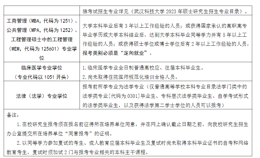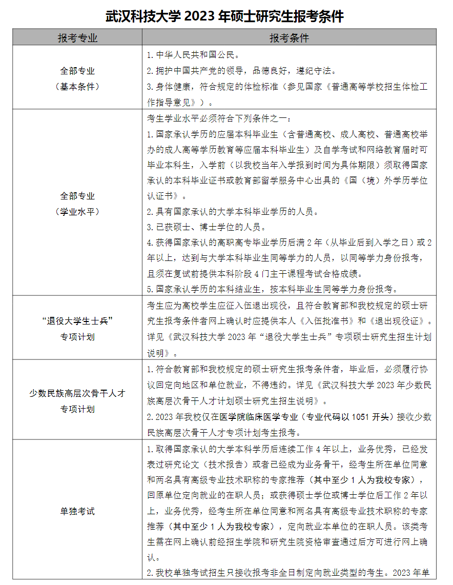 (二)2023武汉科技大学硕士研究生报考条件一览表