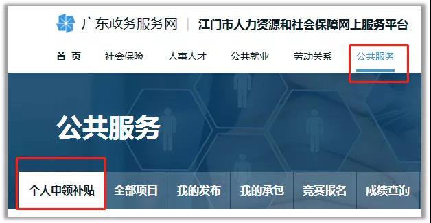 第一步:登录“江门市人力资源和社会保障局网上服务平台”