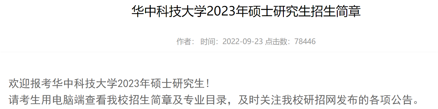 2023华中科技大学考研招生简章及招生目录官网查询入口