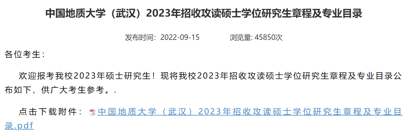 2023中国地质大学武汉考研招生简章 中国地质大学武汉2022考研招生简章