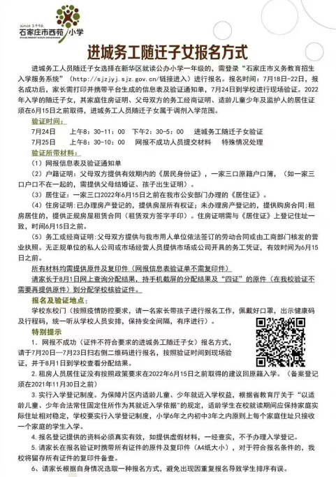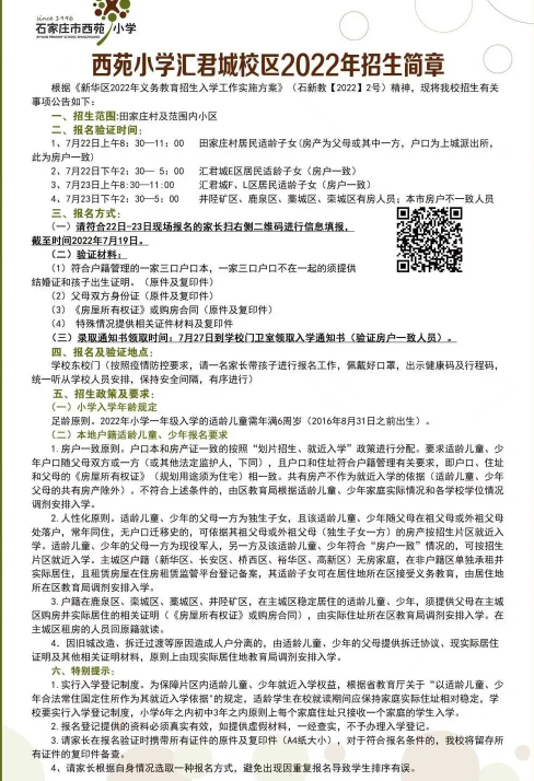2022石家庄西苑小学招生简章如下: