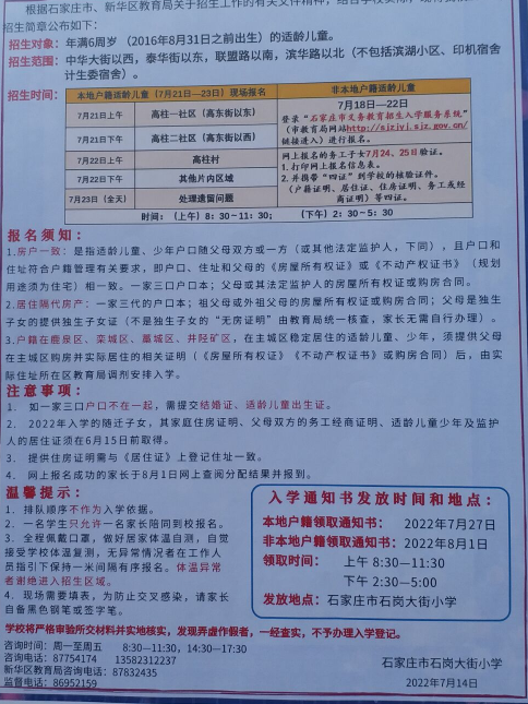 2022石家庄石岗大街小学招生简章(石家庄小学划片招生范围2018)