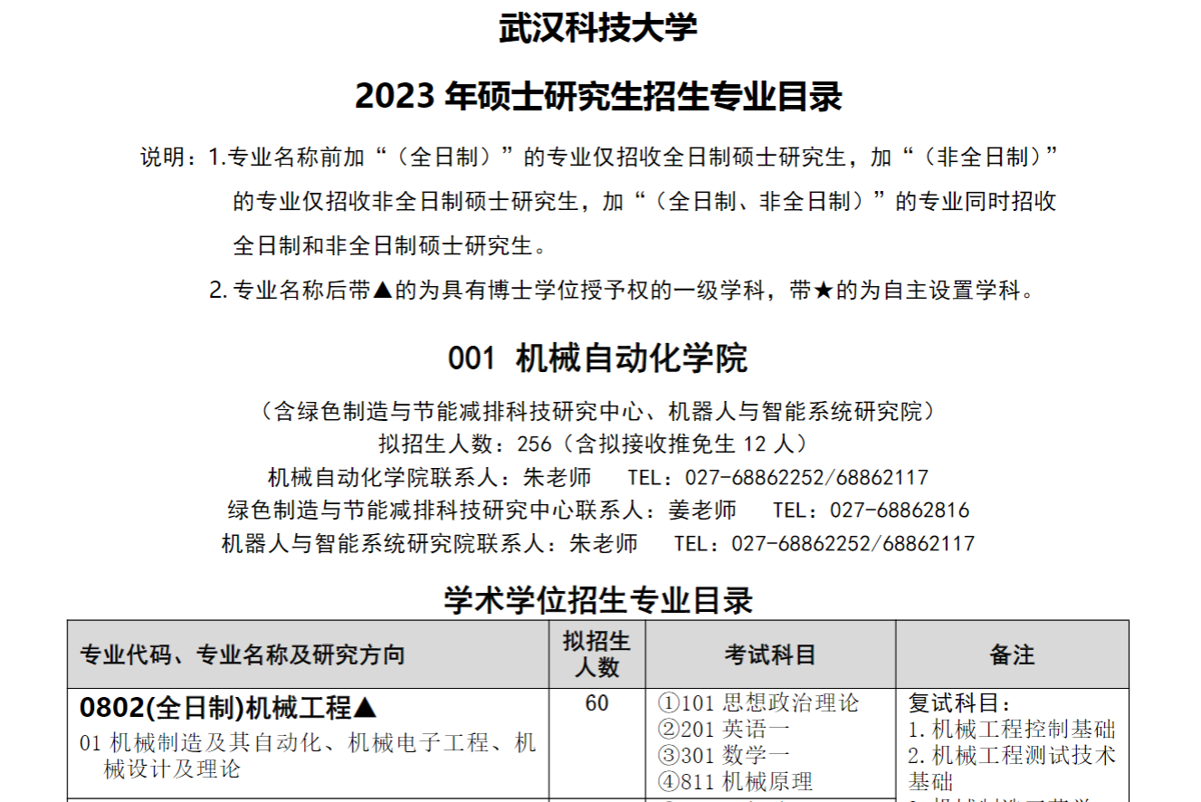 >> 2023武汉科技大学考研招生简章(专业目录)查询入口:武汉科技大学研究生官网