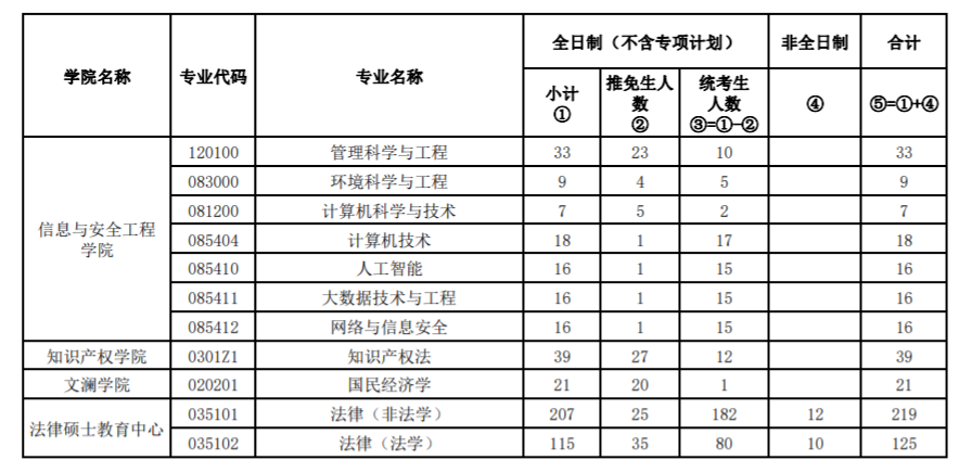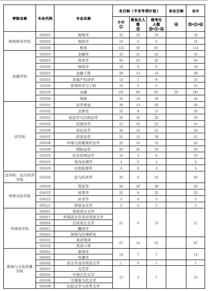 根据教育部办公厅《关于统筹全日制和非全日制研究生管理工作的通知》(教研厅〔2016〕2号)、《2023年全国硕士研究生招生工作管理规定》(教学〔2022〕3号)相关规定,中南财经政法大学2023年预计招收攻读硕士学位研究生3000余名(含推荐免试生和少数民族骨干计划研究生、退役大学生士兵计划研究生等)。