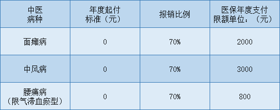 职工医保参保人在我市定点医疗机构门诊使用中医适宜技术治疗面瘫病、中风病、腰痛病(限气滞血瘀型)产生的诊疗服务费纳入医保基金支付范围。