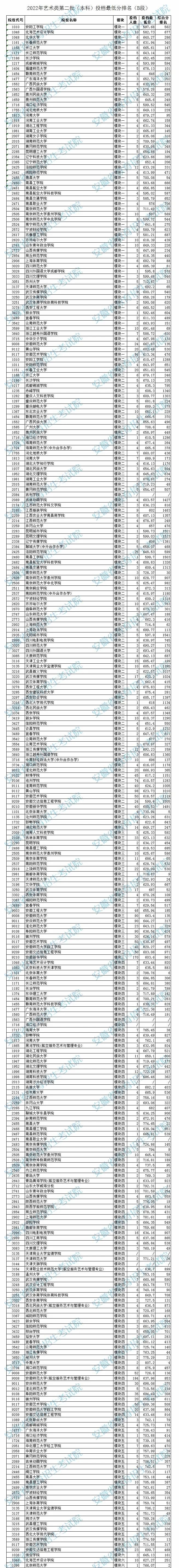 2022年艺术类第二批(本科)投档最低分排名(B段)