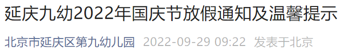 2022北京延庆区第九幼儿园国庆放假通知及温馨提示