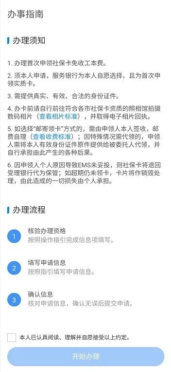 2. 点击首页“社会保障卡”,选择“社保卡申领”,阅读办理须知,确认办理。