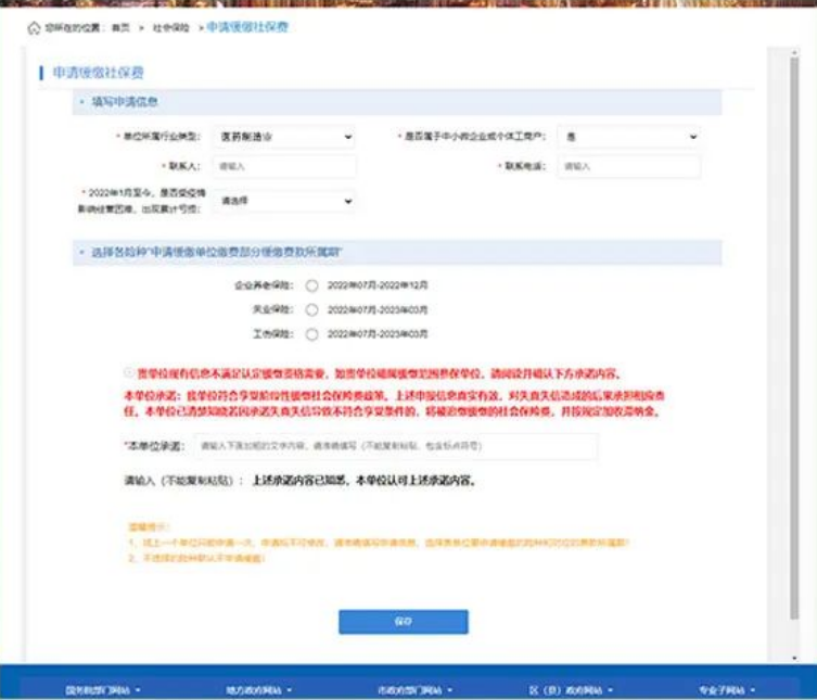 注:已通过部门间数据共享,对五个特困行业的企业行业类型进行标识,如属于5个特困行业的企业,不需线上承诺,可直接选择缴费期限。