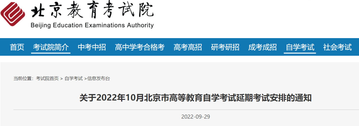 关于2022年10月北京市高等教育自学考试延期考试安排的通知