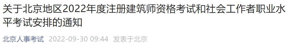 关于北京地区2022年度注册建筑师资格考试和社会工作者职业水平考试安排的通知