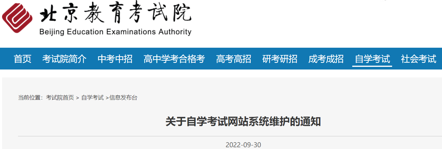 2022北京自学考试网站系统维护通知发布