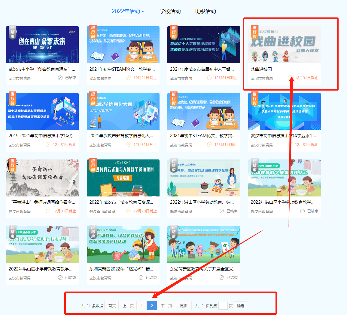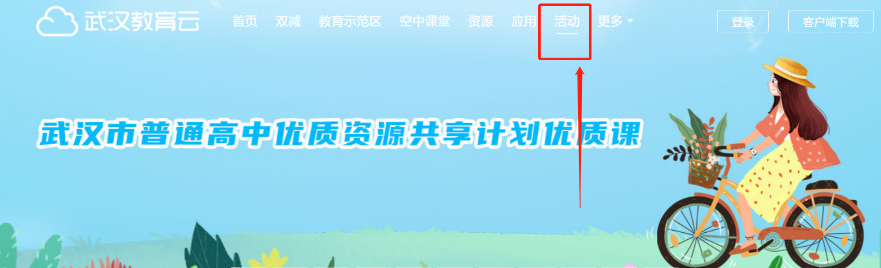 1、进入武汉教育云官网,点击“活动”