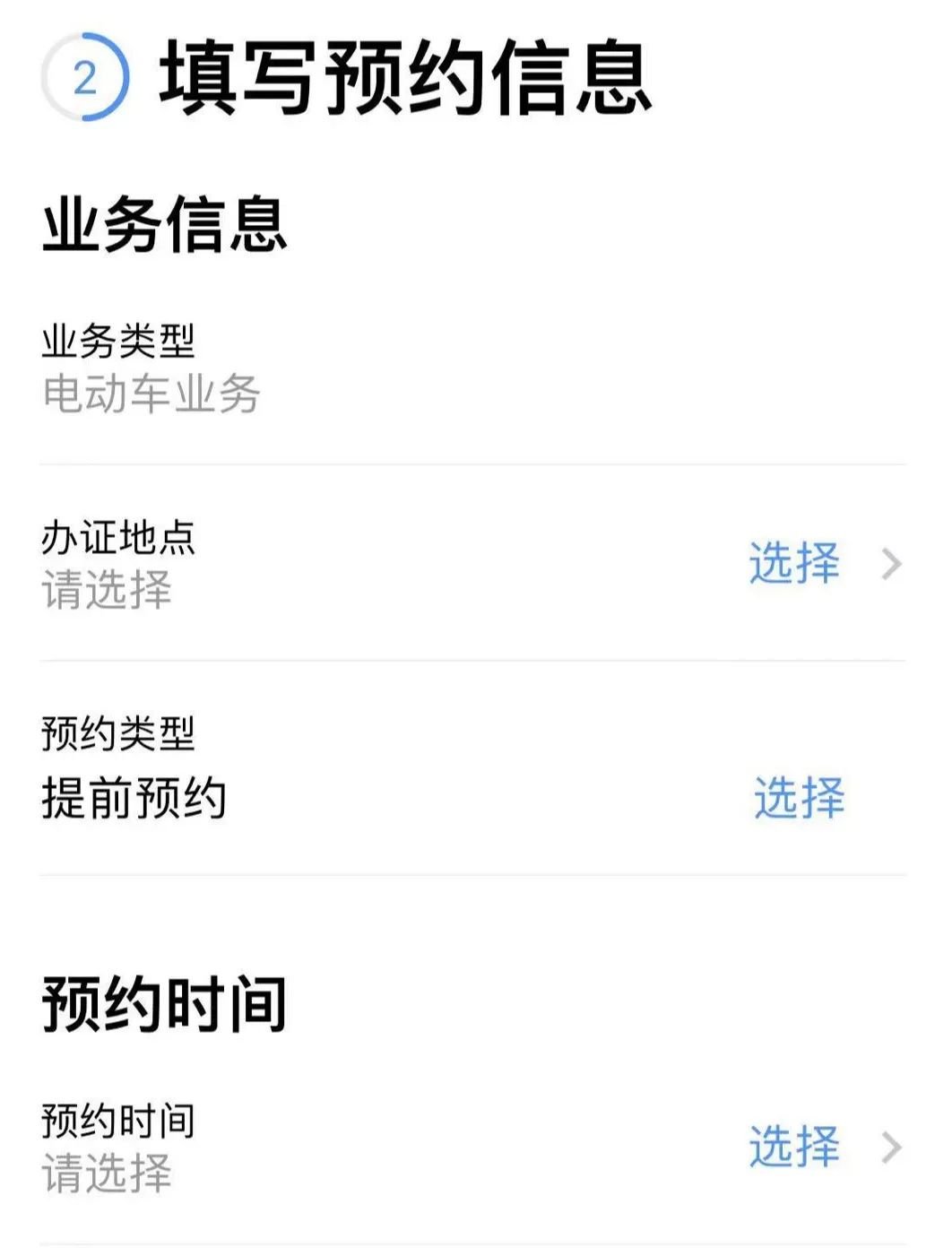 4、填写预约信息:分项选择办证地点、预约类型、预约时间。