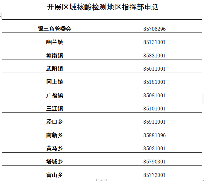 附件:开展区域核酸检测地区指挥部电话