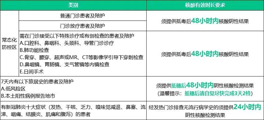 1、住院患者及其陪护须持抵穗后24小时内阴性核酸检测结果方可办理入院。7天内有低风险区和(或)有本土阳性病例报告地市旅居史的人员,须凭24小时内阴性核酸检测结果且完成落地3天2检(间隔24小时)核酸检测结果阴性的可办理入院。