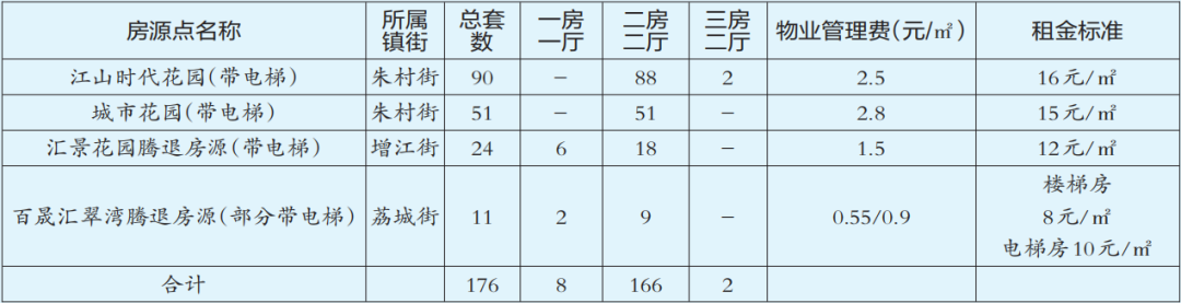 本次推出分配的公共租赁住房房源点共有4个,总套数为176套,房源详见公共租赁住房房源情况表。