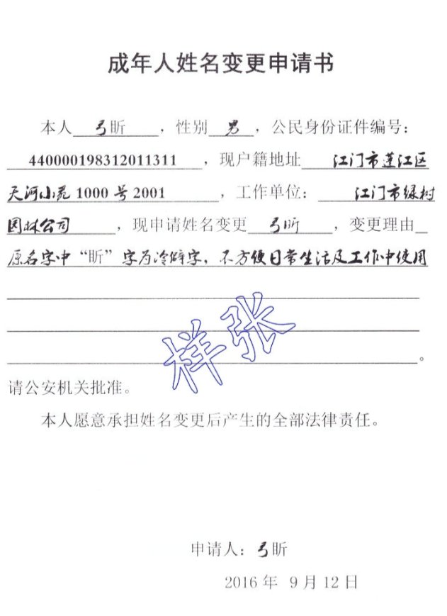 江门成年人姓名更改办理材料