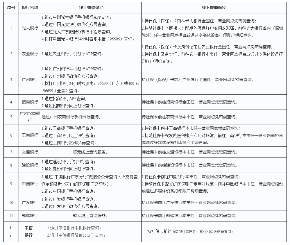 答:广州市社会医疗保险个人账户由医保服务银行按照中国人民银行及广州市社会保险相关规定进行管理,并由医保服务银行依法为参保人员的个人账户信息以及个人消费信息保密。参保人员如果对粤省事、穗好办等第三方微信小程序或者APP的查询结果存疑的,可通过以下方式查询本人社保卡(医保卡)中医保个人账户的消费明细以及账户余额: