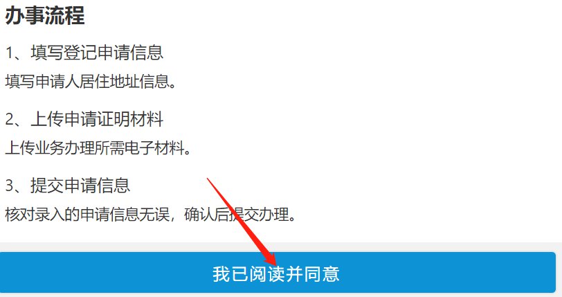第四步:点击【我已阅读并同意】,按照页面提醒即可完成办理,需要填写登记申请信息,上传申请证明材料,提交申请信息。;