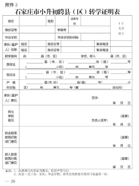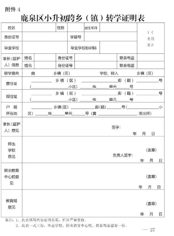 4、鹿泉区小升初跨乡(镇)转学证明表