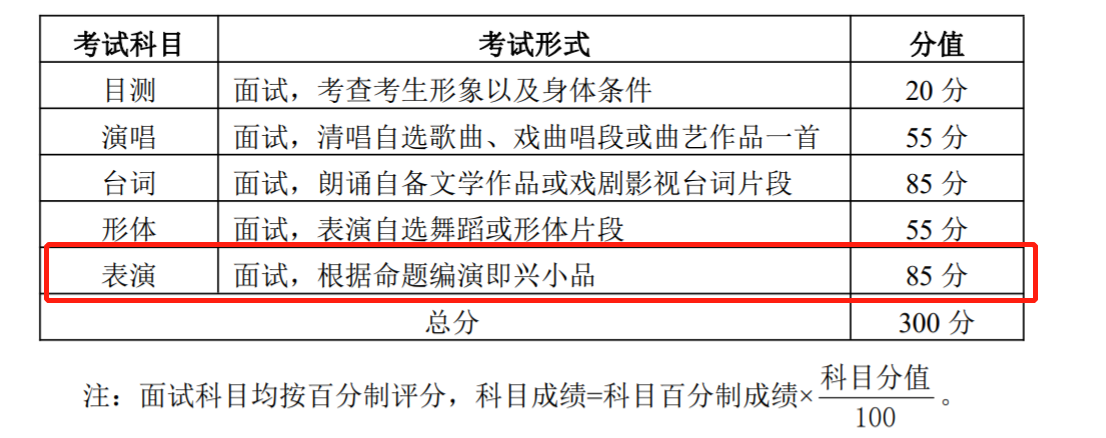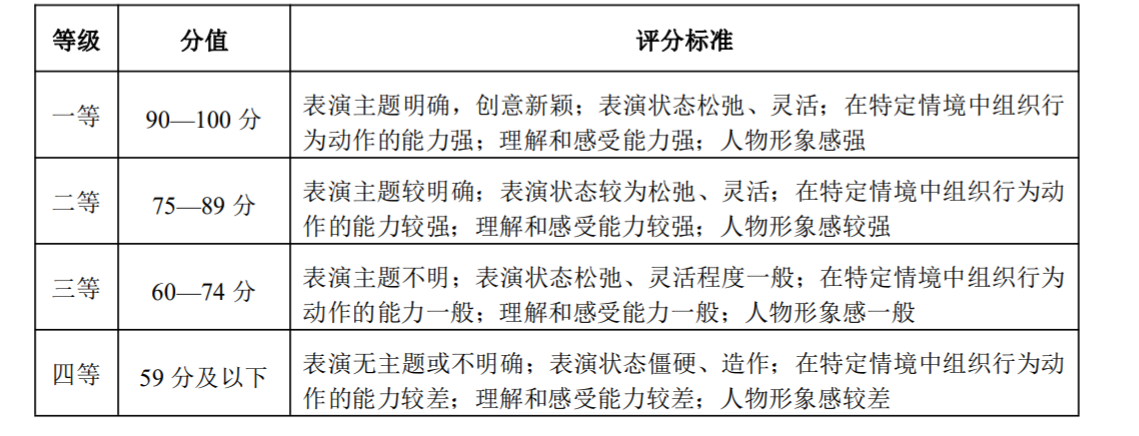 表演考试是对考生基本素质的综合考查。除了对考生外部形象、气质进行考查外,更主要的是对考生的想象力、感受力、理解力、表现力以及激情、应变能力等内在素质的考查。
