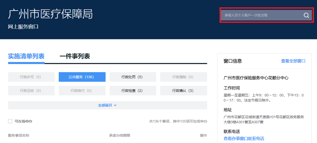 (三)在搜索栏搜索“参保人员个人账户一次性支取”。
