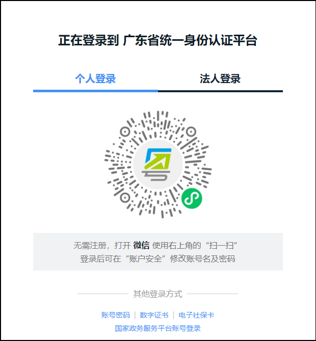 (六)按照系统提示登录“广东省统一身份认证平台”。