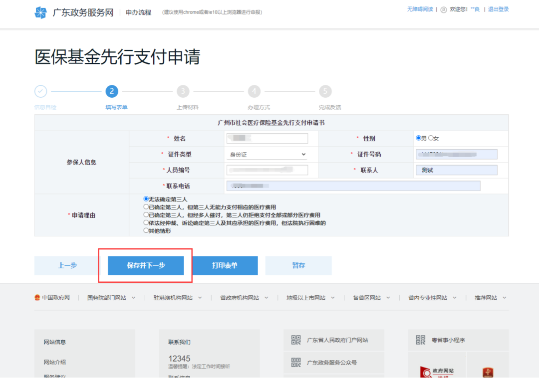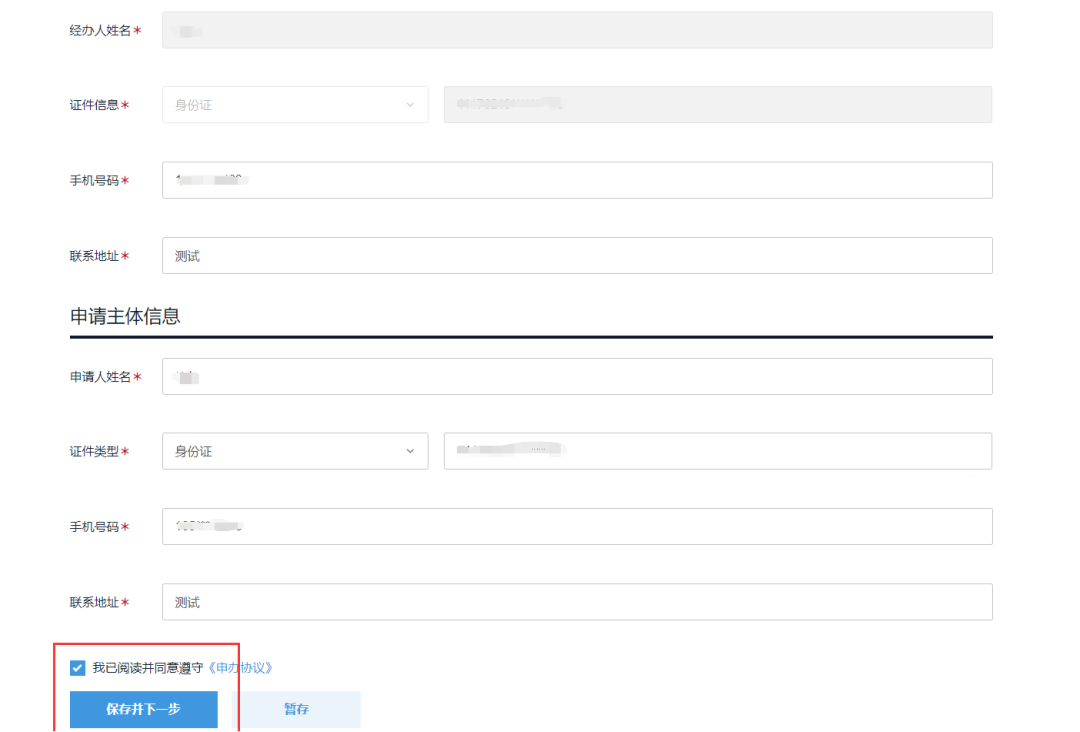 9. 填写完整申请书信息后,点击“保存并下一步”: