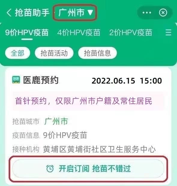 注:点击“开启订阅”,抢苗时间不错过!疫苗开放预约时,订阅按钮将变为预约入口,点击立即预约