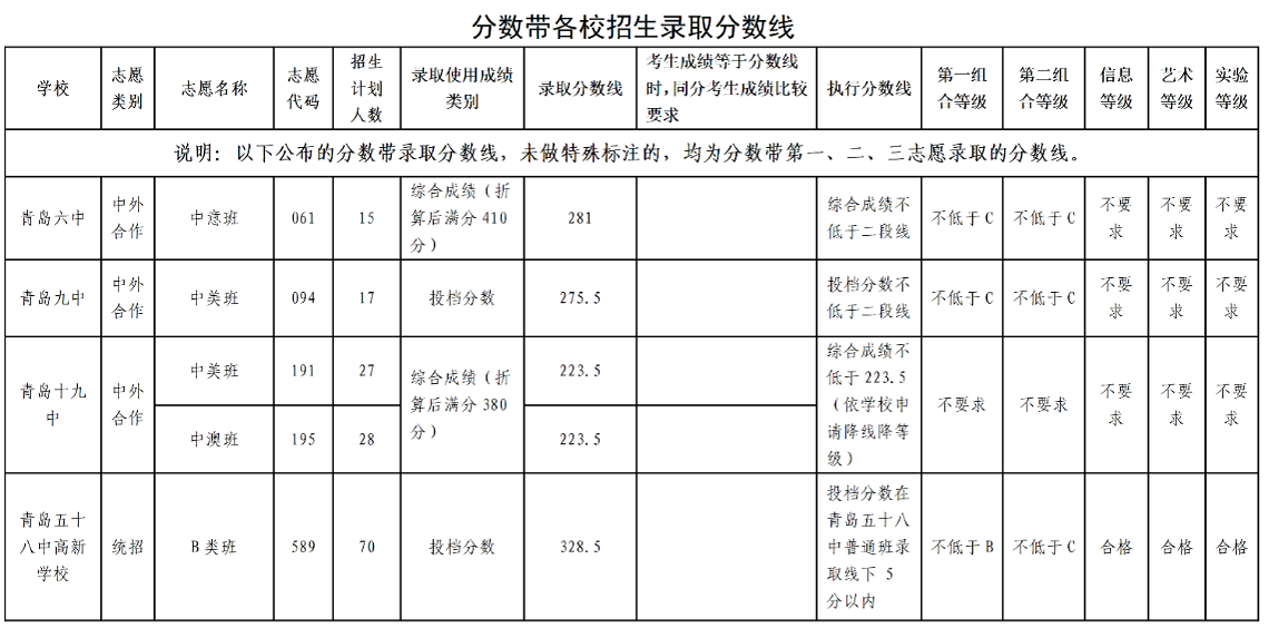 现将2022年全市局属公办普通高中(含综合高中)、四区和高新区民办普通高中学校,以及纳入分数带录取的新型普职融通试点学校,第二阶段分数带招生录取分数线公告如下: