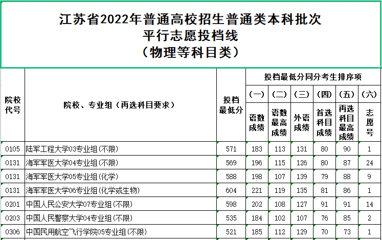 2022江苏高考普通类本科批次平行志愿投档线 (物理等科目类)