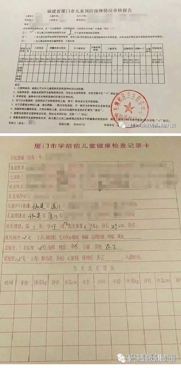注:由幼儿预防接种所在的社区卫生服务中心打印出具审核报告并盖章才有效、健康卡(区级妇幼保健院做入园体检,体检卡2个月内有效2022年7月-8月体检有效)。