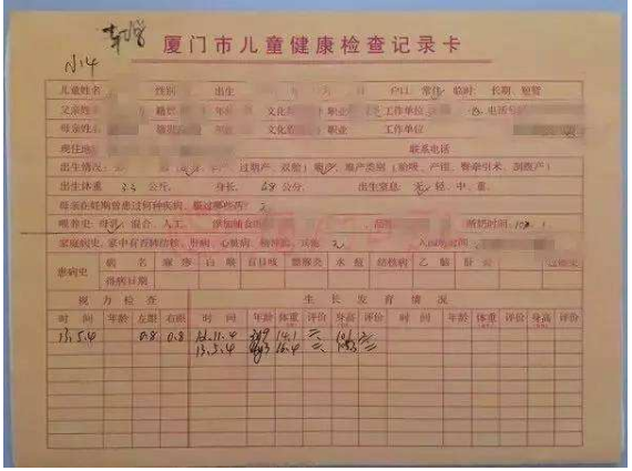 4、厦门市学龄前儿童健康检查记录卡(内附幼儿入园健康检查表)