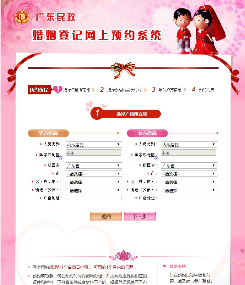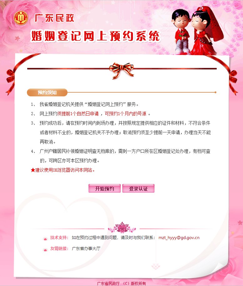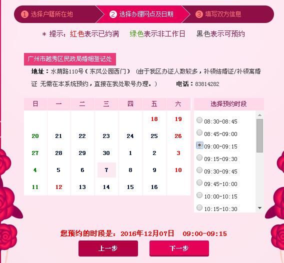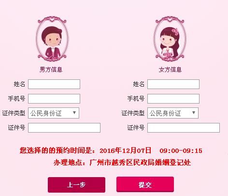 2、预约成功后,请在预约时间内到场办理,并按照规定提 供相应的证件和材料,不符合条件或者材料不全的,婚姻登记机关不予办理;取消预约须至少提前一天申请。