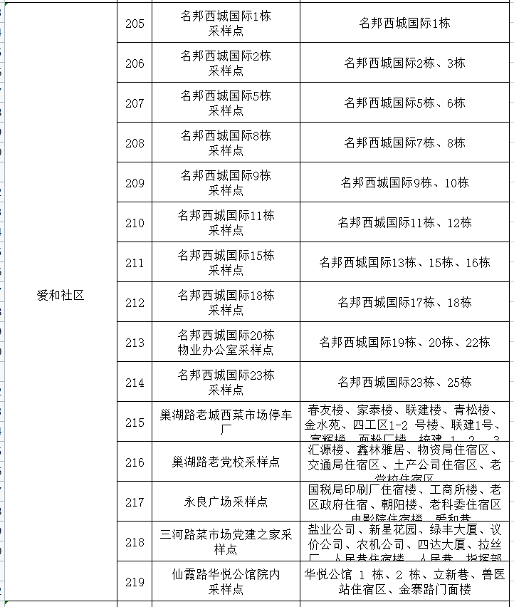 为全面做好应对突发疫情的各项准备工作,现将肥西县爱和社区突发疫情时核酸检测采样点公示如下,请广大居民知悉,一旦发生疫情需要开展全员核酸检测时,请积极配合社区(村),主动到居住地相对应的采样点接受核酸采样工作,提前准备好核酸检测预登记码,戴好口罩、保持距离,快速有序地完成核酸采样工作,为更快发现并阻断疫情赢得时间。