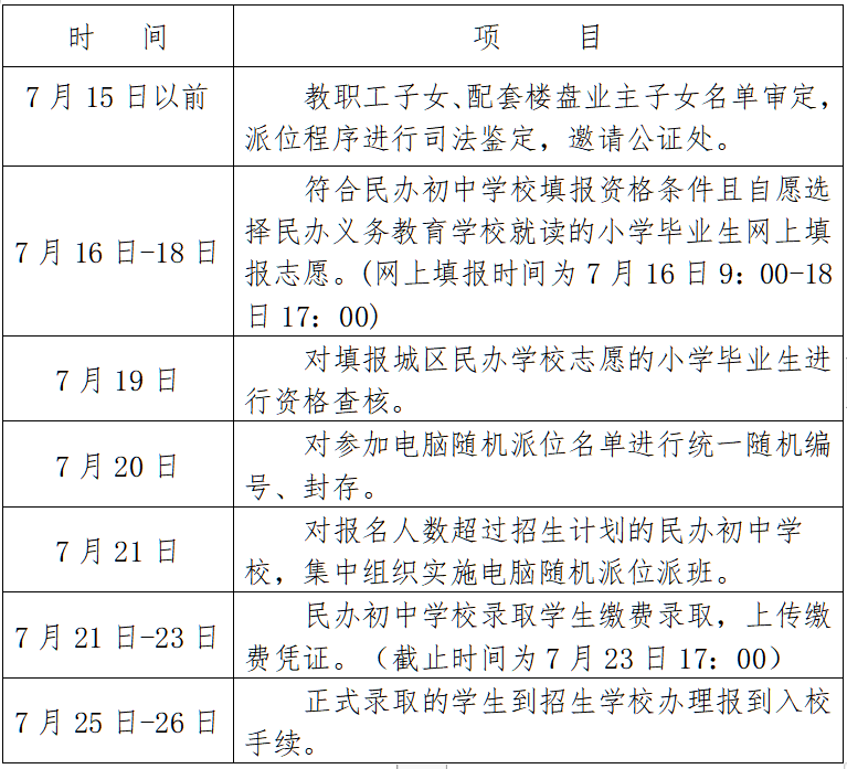 (二)符合城区民办义务教育学校填报资格条件且自愿选择民办义务教育学校就读的少年儿童均须登录“入学平台”,在规定时间内进行信息核验和志愿填报。信息核验不通过的学生将取消民办义务教育学校报名和录取资格。对未经 “入学平台”进行信息采集报名的学生,一律不予办理民办招生录取手续。(经教育行政部门审定的教职工子女和配套楼盘业主子女除外)