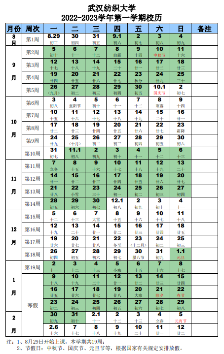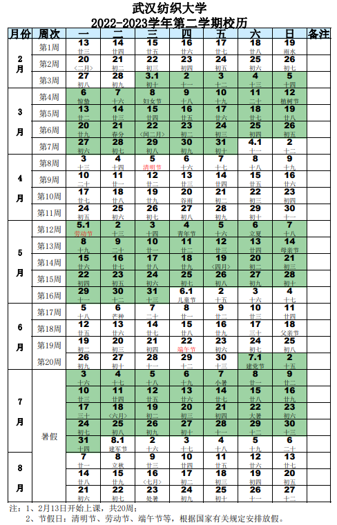 武汉纺织大学2022-2023学年校历(武汉纺织大学2021校历)