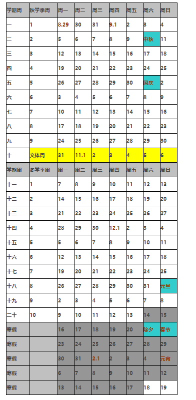 武汉工程大学校历2022-2023学年(整理自武汉工程大学官网,如有变动以学校实际情况为准)
