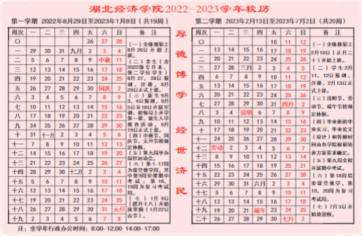 2022-2023年湖北经济学院校历(2021湖北经济学院校历)
