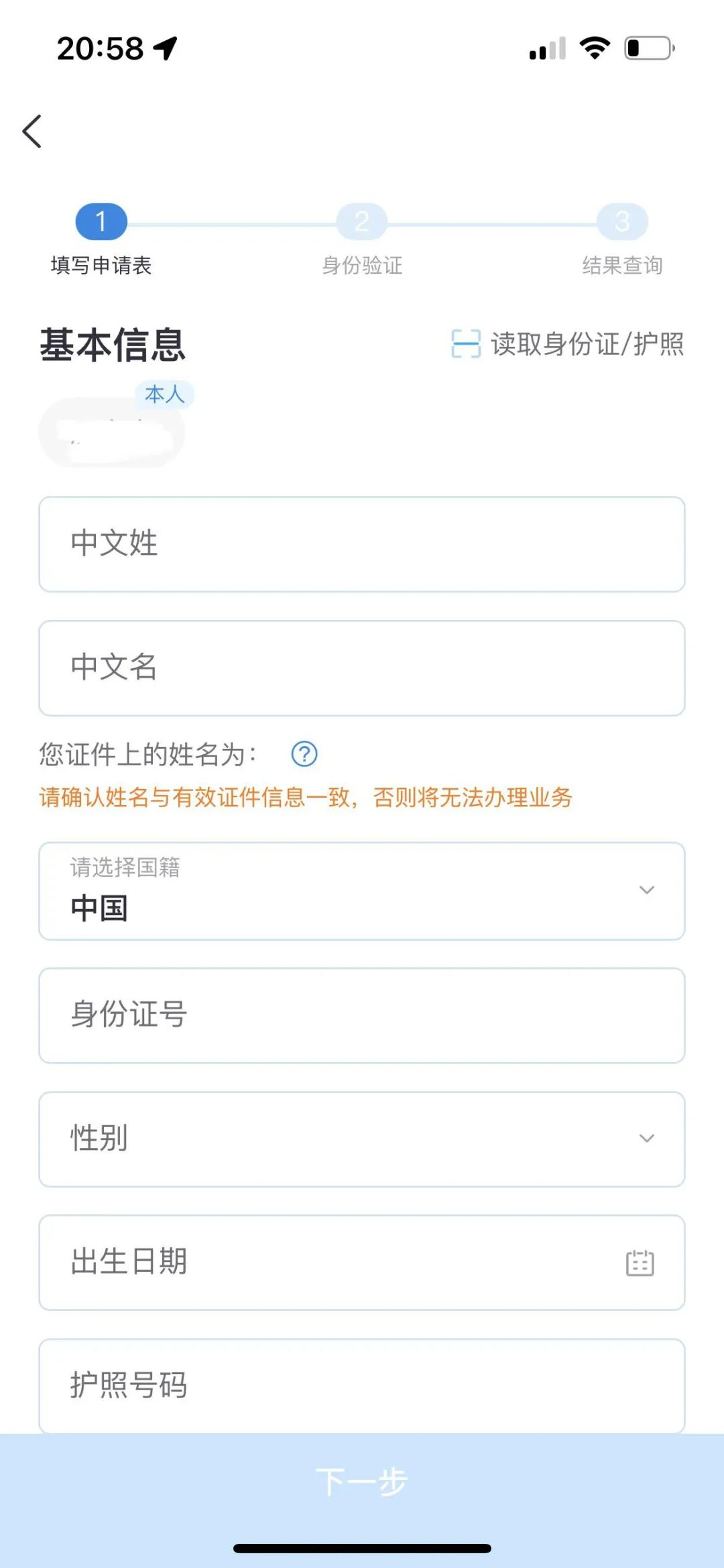 (1)填写人员基本信息,可本人申请也可代他人申请