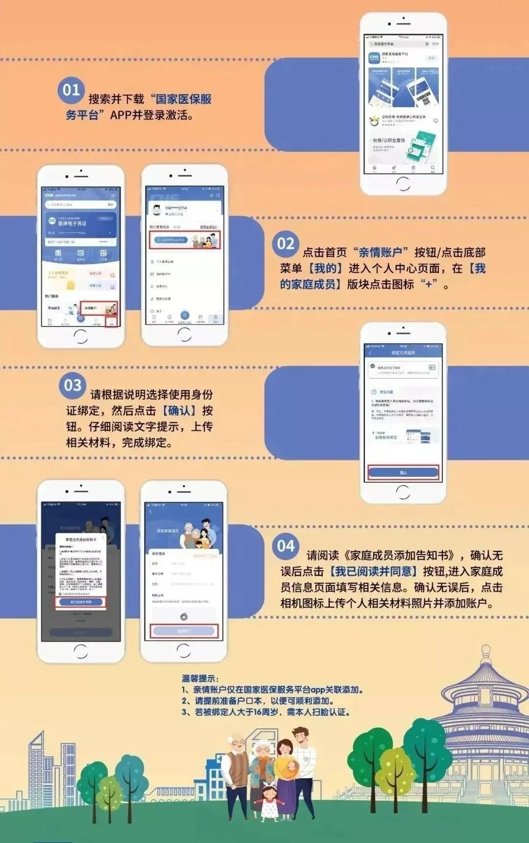 (1)16周岁以下有身份证号的学生儿童,其父母可在国家医保服务平台医保电子凭证中“医保家庭账户”添加亲情账户,将儿童医保电子凭证激活。
