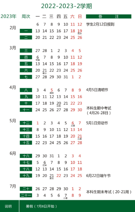2022—2023年华中农业大学校历(整理自学校官网,如有变动以学校实际情况为准)