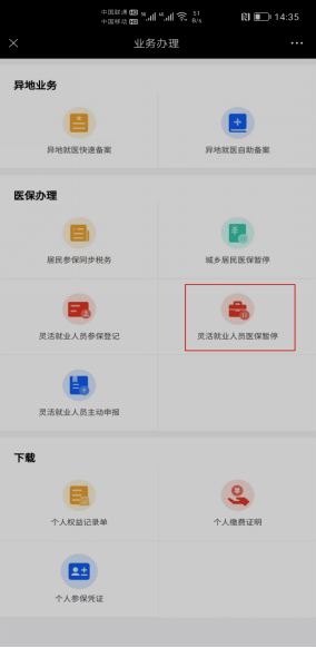 2.重新登录后点击“服务大厅”点击“业务办理”,在灵活就业人员参保登记模块功能进行办理。